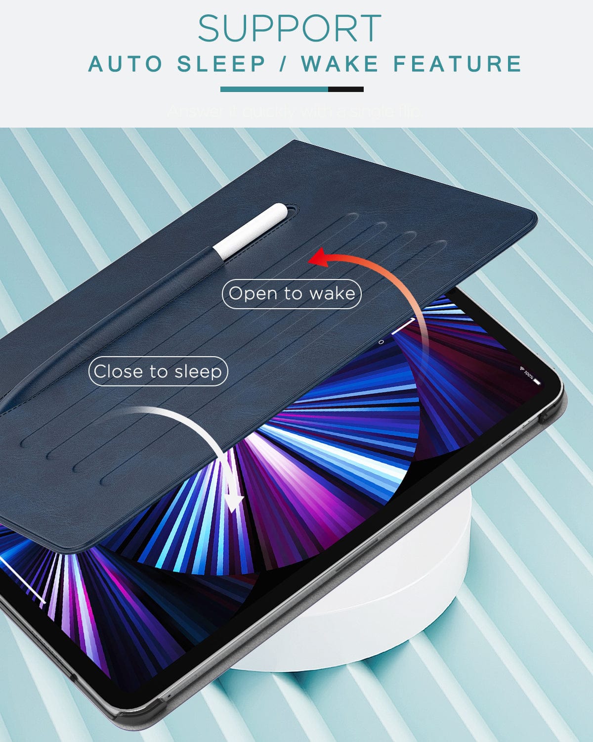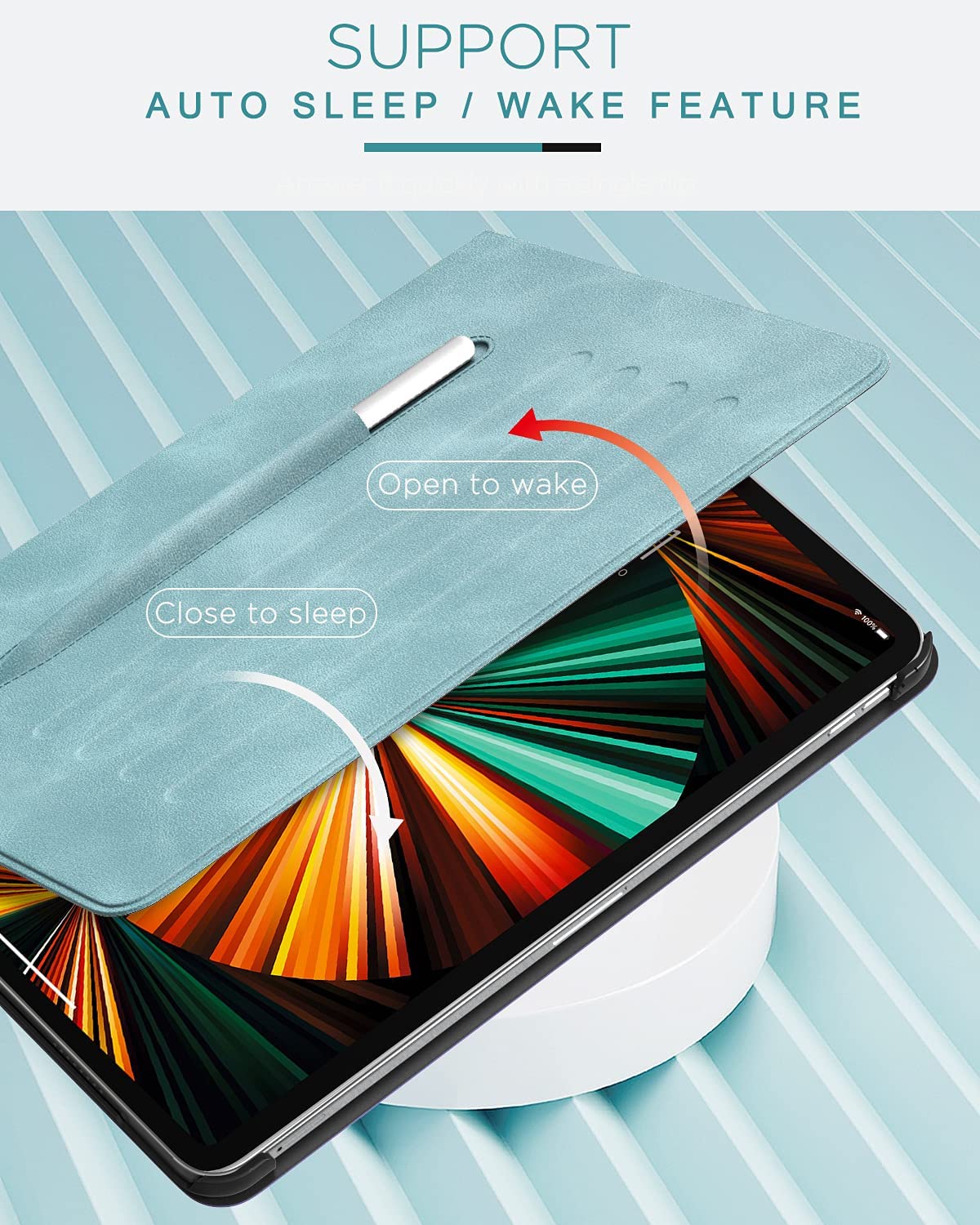 - Auto Sleep/Wake Cover: Smart cover that conserves battery life by automatically waking or putting your iPad to sleep.