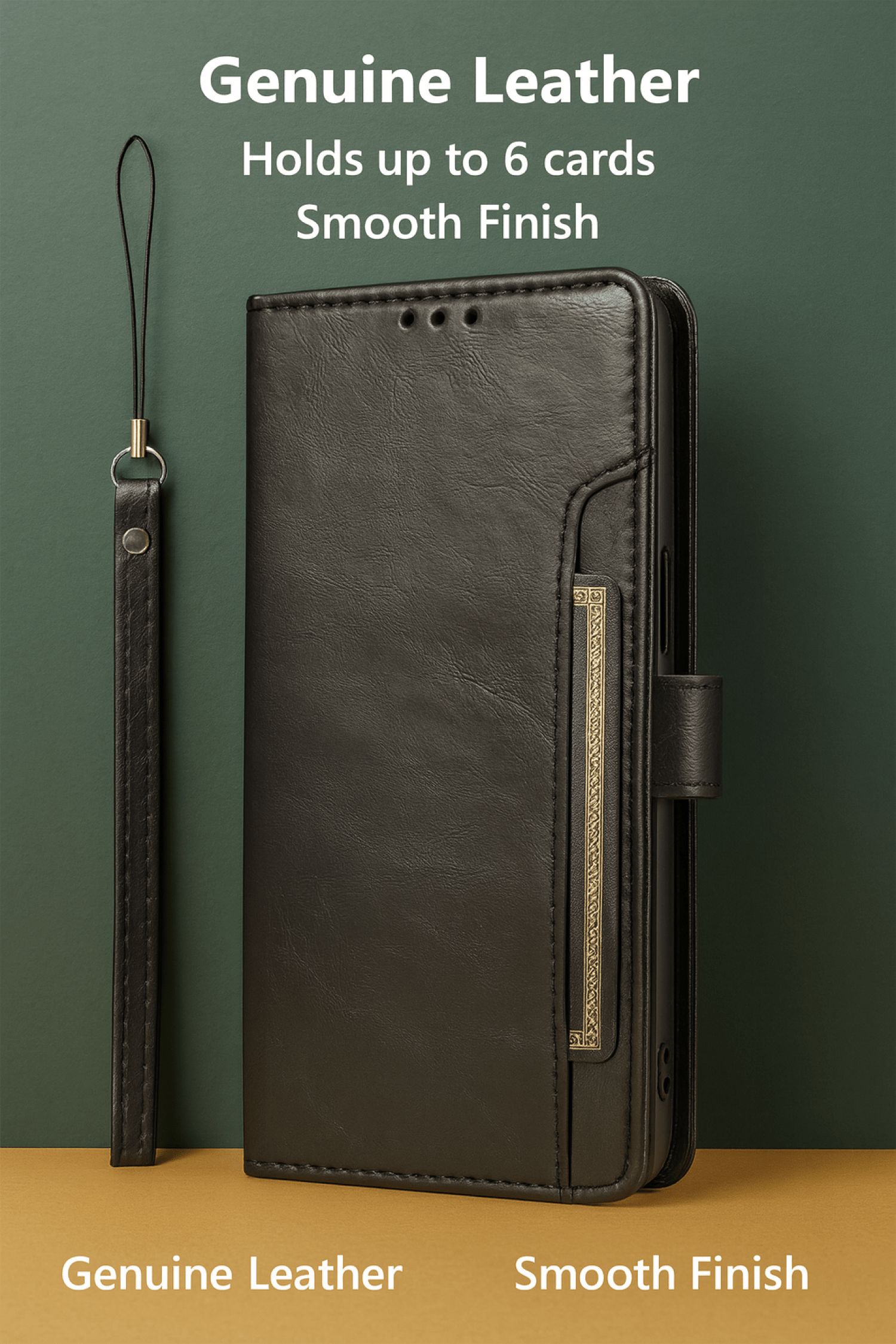 Protect your Apple iPhone 17 Pro with the SaharaCase Indy Series Leather Folio Wallet Case. Crafted from genuine full-grain leather, this slim folio design blends style with everyday functionality. The lightweight build ensures a secure fit, while integrated card slots let you store up to five cards and cash. A MagSafe-compatible ring doubles as a kickstand for hands-free viewing, and precise cutouts allow easy access to the camera, speakers, and ports. Durable leather resists stretching and fading, keeping the case looking sophisticated over time.