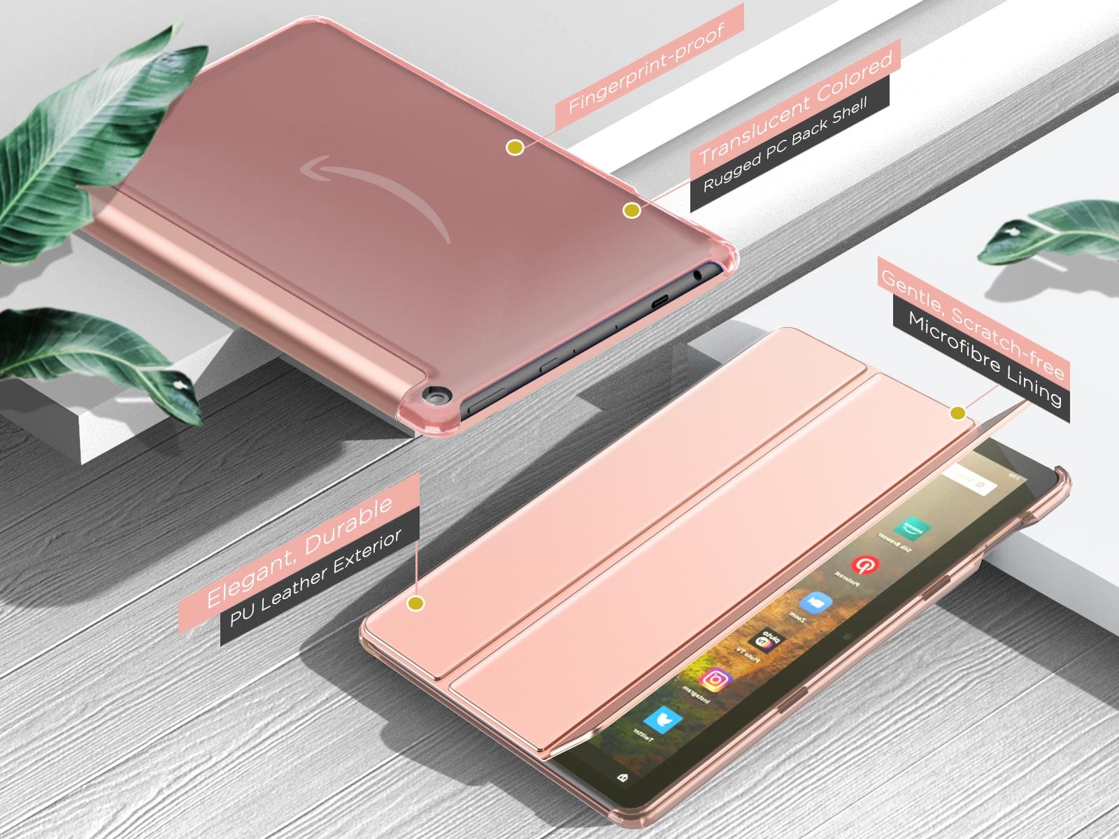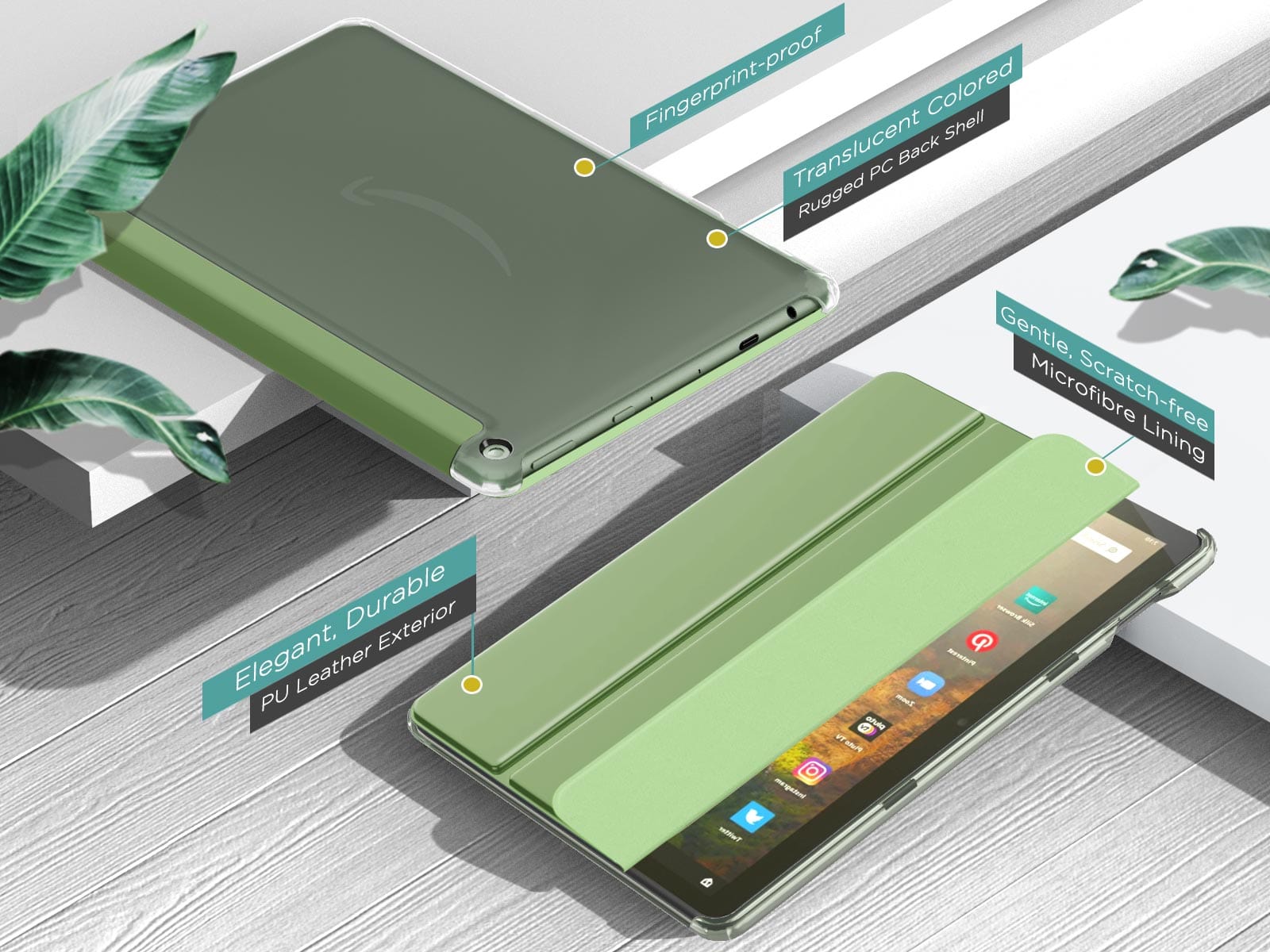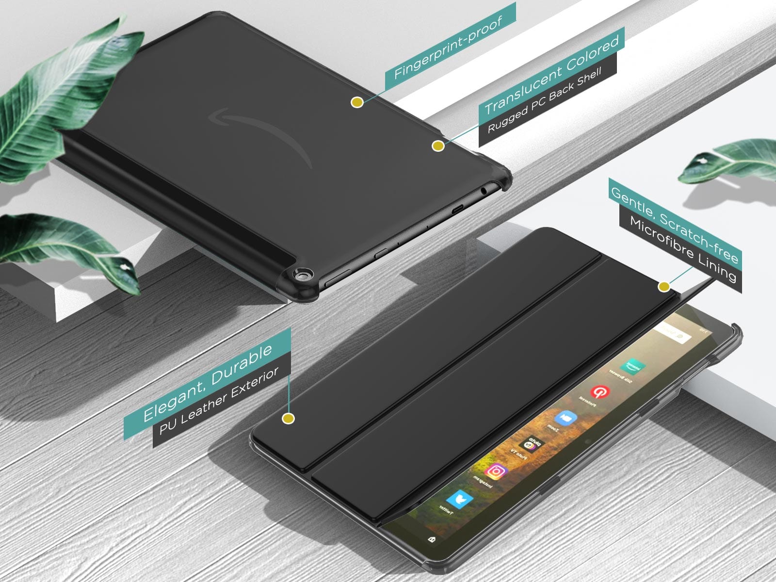 The Venture™ Series Tri-Fold Folio for the Amazon Fire HD 10 is designed with simplicity and minimalism in mind while offering practical protection for the device.